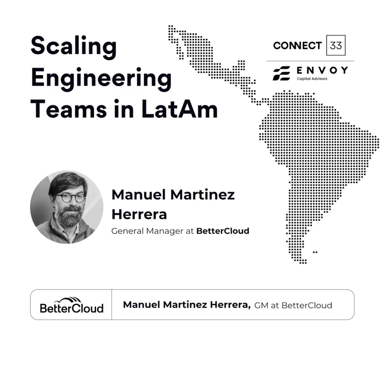 Scaling Engineering Teams in LATAM: Our Connect33 leadership conversation series continues with Manuel Martinez-Herrera, who discusses his experience in establishing and scaling BetterCloud's engineering operations in Mexico, from zero to a team of over 40 engineers. Manuel discusses how they decided to expand into Mexico, the engineering talent market, and talent scaling strategies that were pivotal in the company’s growth in Mexico City.